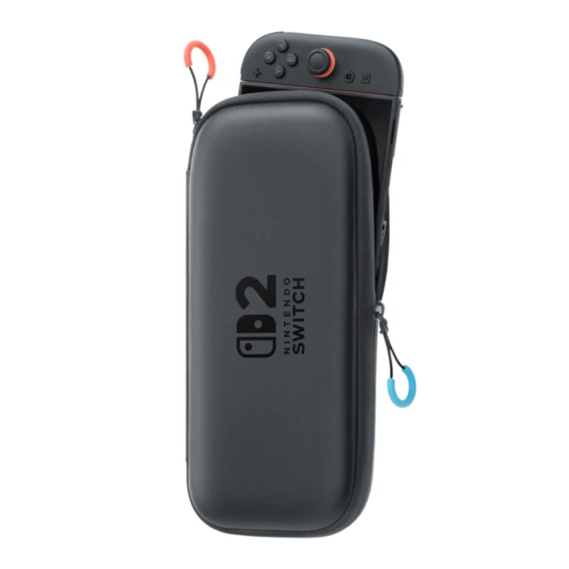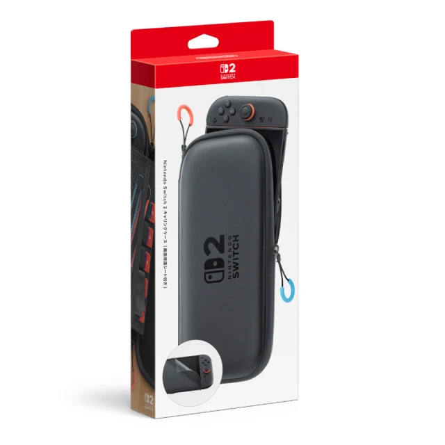 包含「Nintendo Switch 2」主機專用的便攜包、保護螢幕以防受損或髒污的保護貼及拭去螢幕污垢的清潔布的組合。內部的收納空間設有分隔層,可放6張遊戲卡及2條「Joy-Con腕帶」。